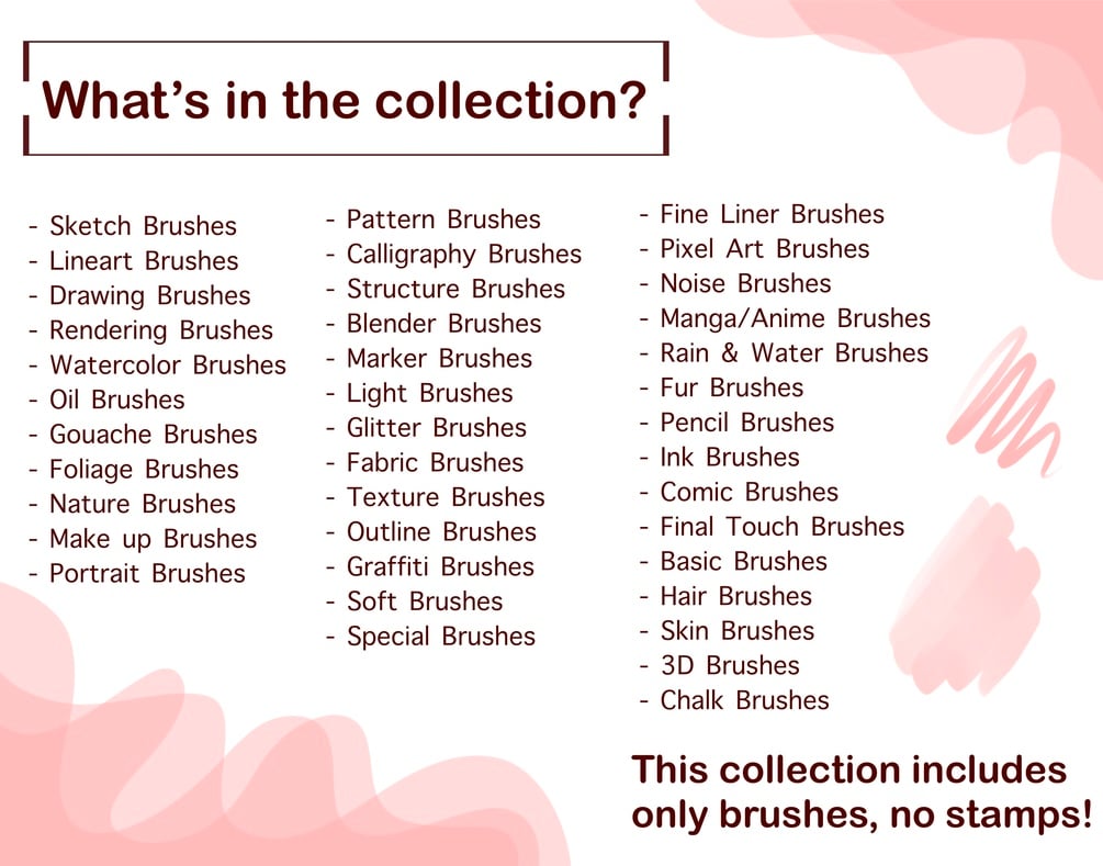 ♥ Your purchase includes 39 brushsets (4280 Procreate Brushes) cleary organized