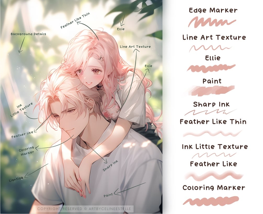 You will get 32 useful Brushes for Procreate, perfect for the style of soft Anime drawings. ♥ This Brushset is my absolute favorite, I use it every day for my own art.