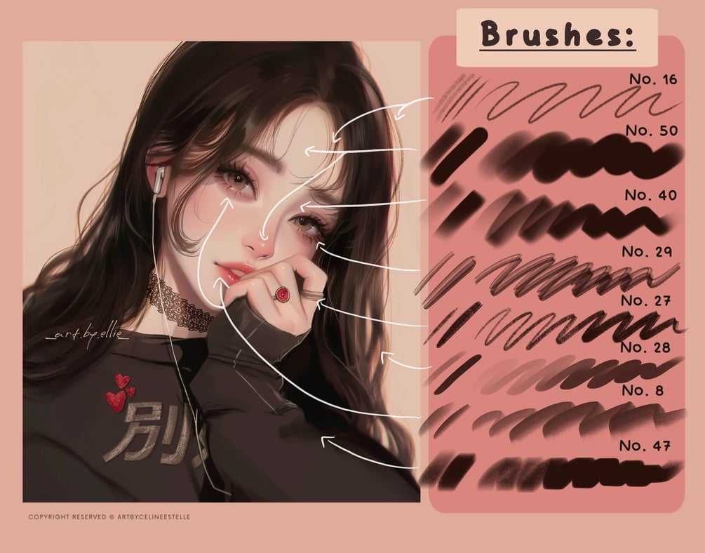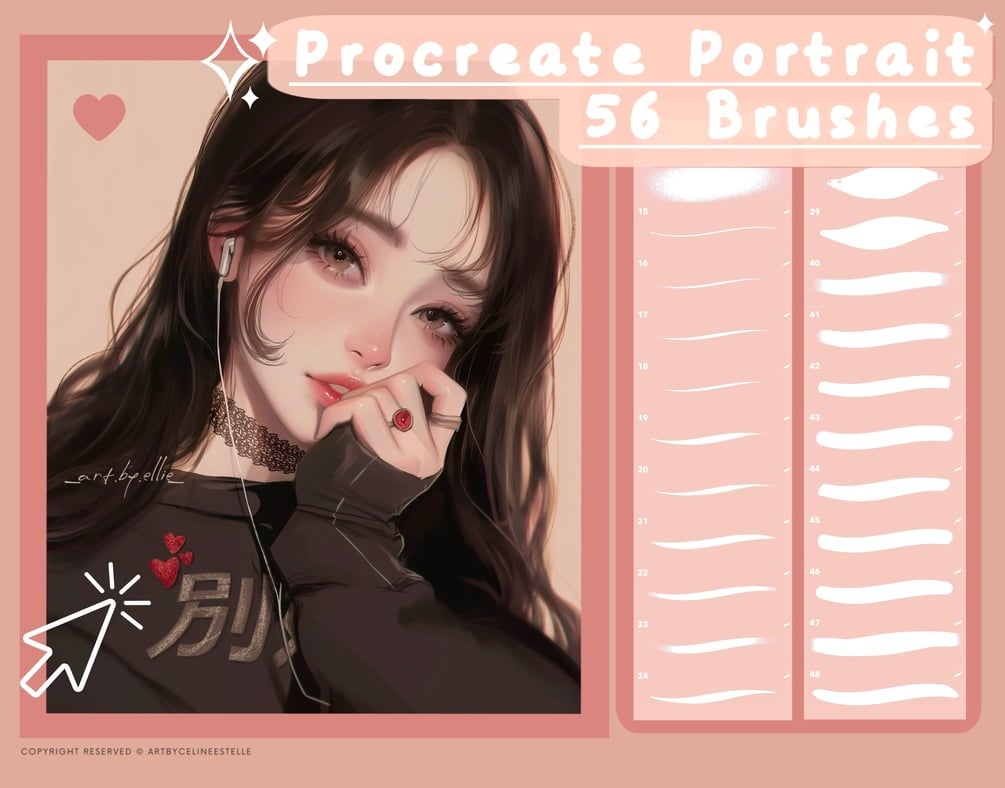 You will get 56 useful "Portrait artsytle" Brushes. So you can start drawing in a super easy and comfortable way! ♥