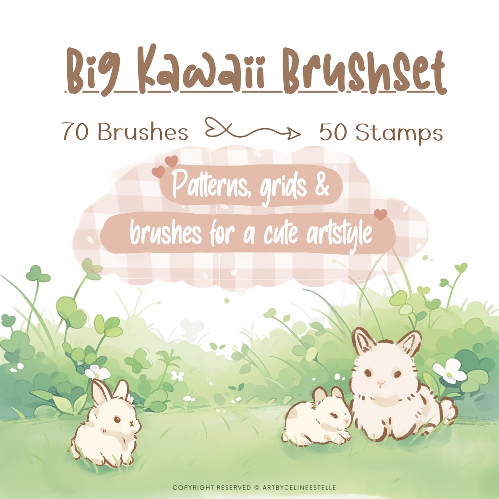 You will get 70 useful "Kawaii" Brushes, 50 "Kawaii" stamps for Procreate, so you can start drawing in a super easy and comfortable way, saving a lot of time you would have to spend searching for references! ♥